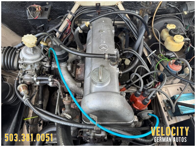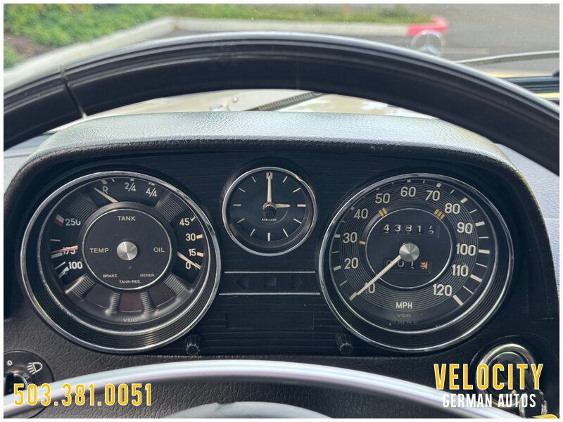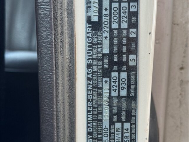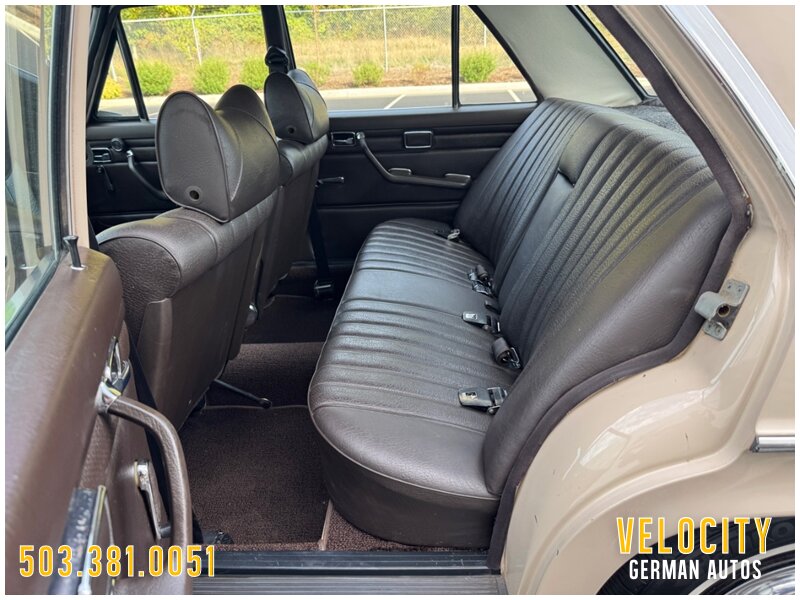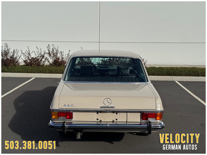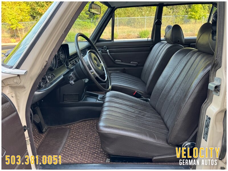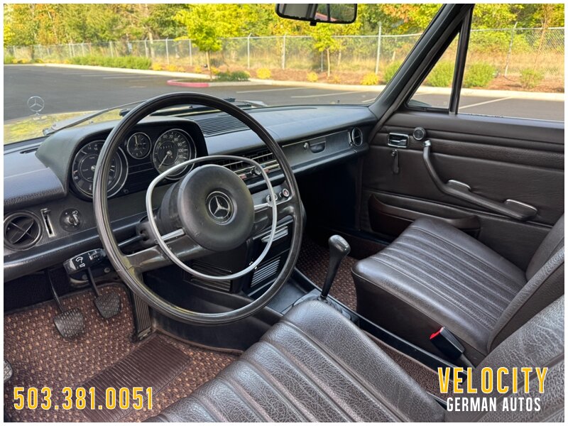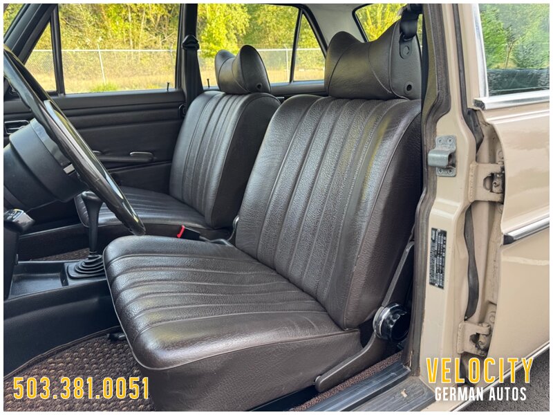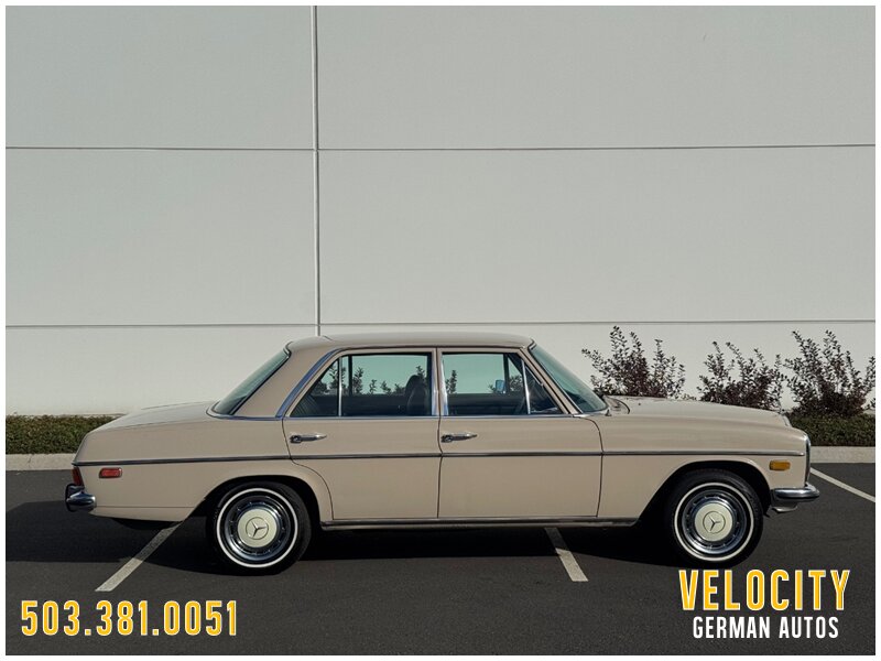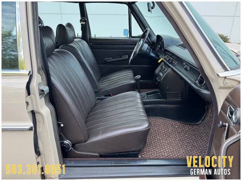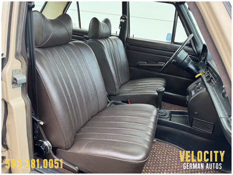 This 1971 Mercedes-Benz 220 is a US-market model finished in Light Beige over Dark Brown MB-Tex upholstery, and it is powered by a 2.2-liter inline-four paired with a four-speed manual transmission. Equipment includes US-specification headlights, 14? steel wheels, painted wheel covers, front shoulder belts, a lockable glovebox, and a heater. This vehicle runs and drives really nice shifts through all the gears really smooth. This W115 220 is now offered with a front-row set of Coco Mats, a wicker basket, tools, the owner’s manual, a workshop manual, and a clean Oregon title.