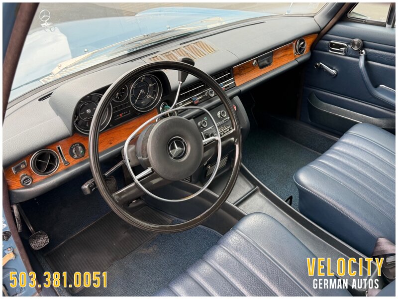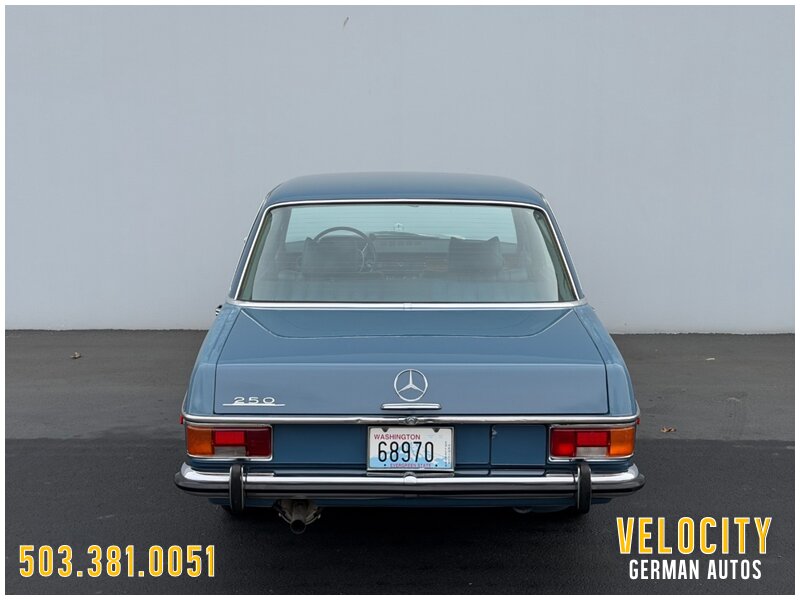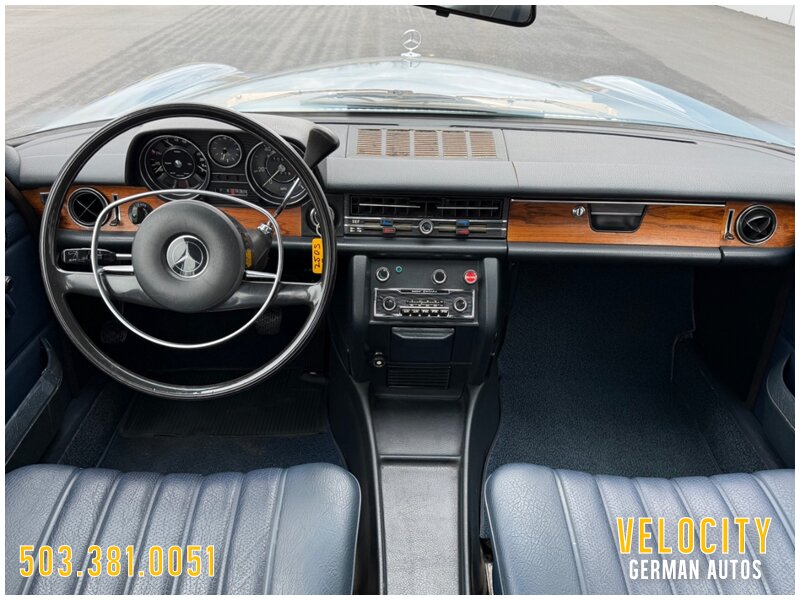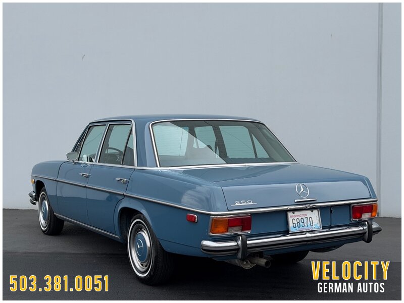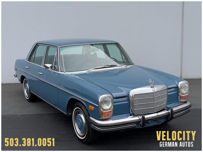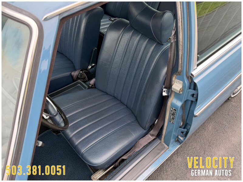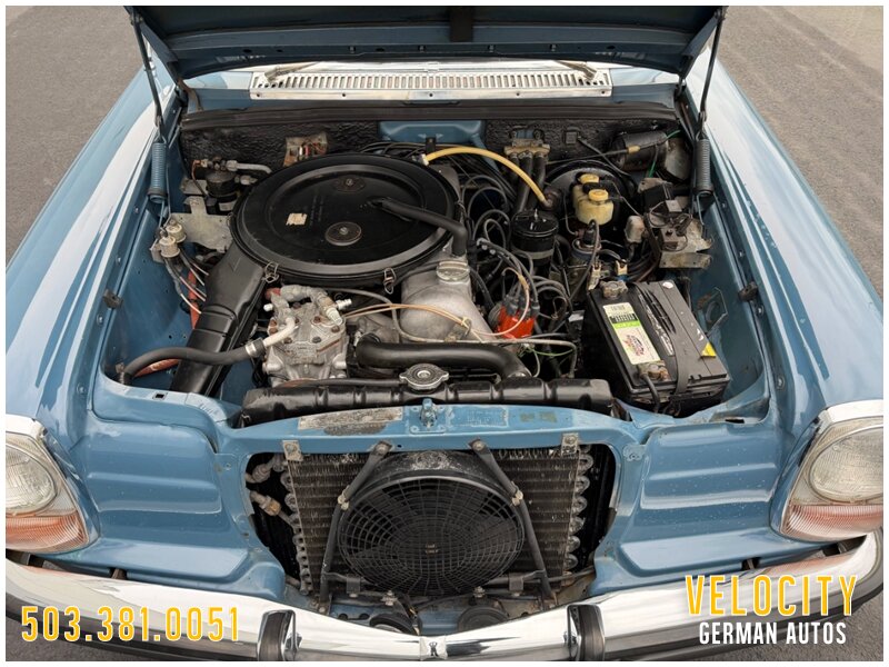 This 1972 Mercedes-Benz 250 is finished in blue over blue MB-Tex. The car was sold new in Oregon, and it has a Becker AM/FM radio. Power comes from a 2.8-liter inline-six paired with a four-speed automatic, and the carburetors were serviced in 2022 along with engine seals and ignition components. The tires were replaced in 2025. This W114 sedan is offered in Oregon with a service tag, owner’s manuals, service records, and a Washington title.