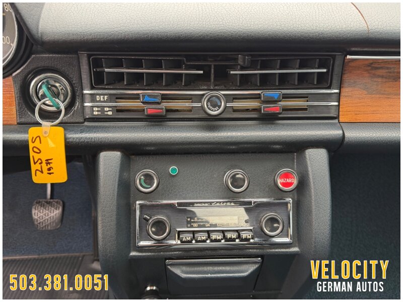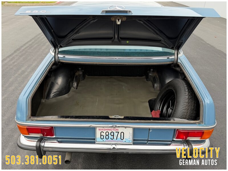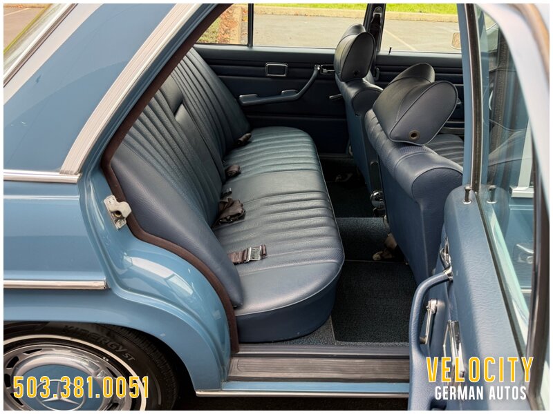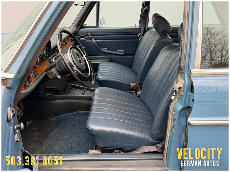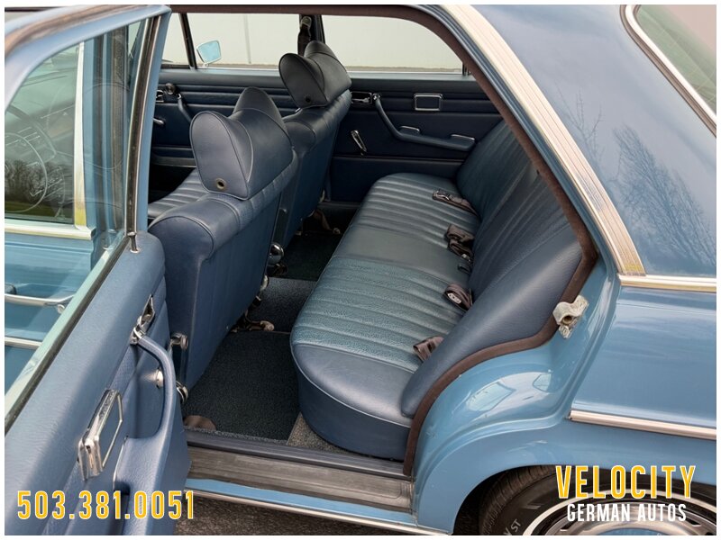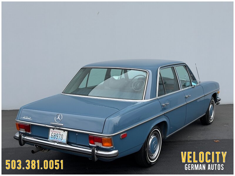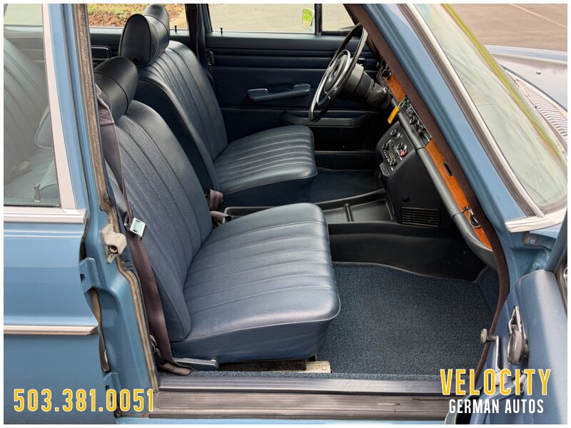 This 1972 Mercedes-Benz 250 is finished in blue over blue MB-Tex. The car was sold new in Oregon, and it has a Becker AM/FM radio. Power comes from a 2.8-liter inline-six paired with a four-speed automatic, and the carburetors were serviced in 2022 along with engine seals and ignition components. The tires were replaced in 2025. This W114 sedan is offered in Oregon with a service tag, owner’s manuals, service records, and a Washington title.