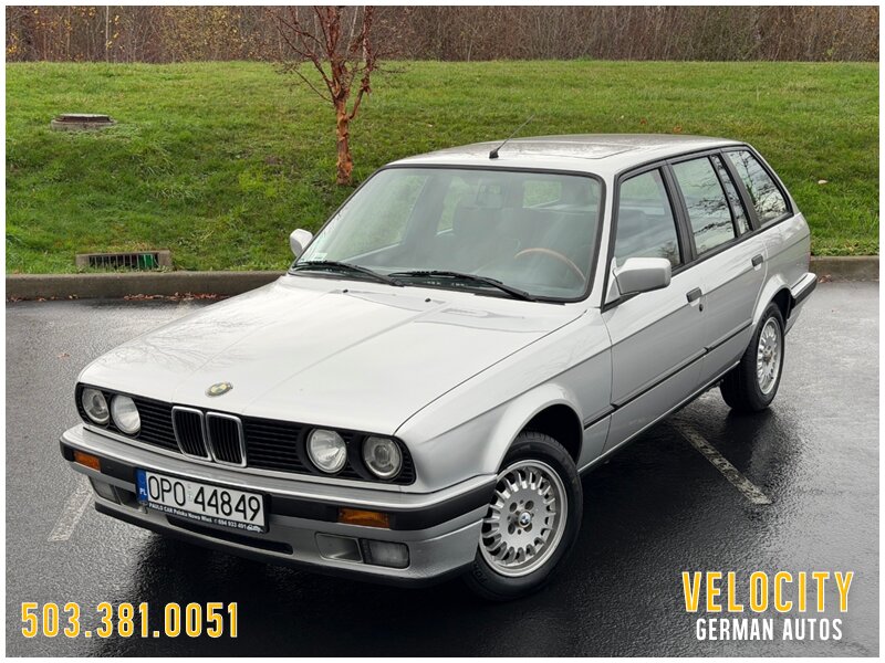 This 1992 BMW 316i Touring was imported to the US from Poland, and it shows 144k kilometers (~89k miles). Finished in Sterling Silver Metallic over gray cloth, it has a sunroof, 14? bottlecap wheels, manual windows, a cassette stereo, and a wood-rimmed steering wheel. Power comes from a 1.6-liter inline-four paired with a five-speed manual transmission, and the timing belt was replaced in 2023. This E30 Touring is offered by the selling dealer with a clean Oregon title.